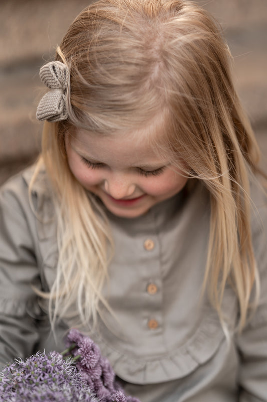 Til de lidt større børn har vi smukke pandebånd til pige, som både varmer og pynter. Derudover finder du elegante sløjfer til håret og scrunchies i matchende farver og materialer, som passer til vores kjoler og bluser. Se hele udvalget af kjoler og bluser, som kan styles med tilbehør til både hverdag og fest.