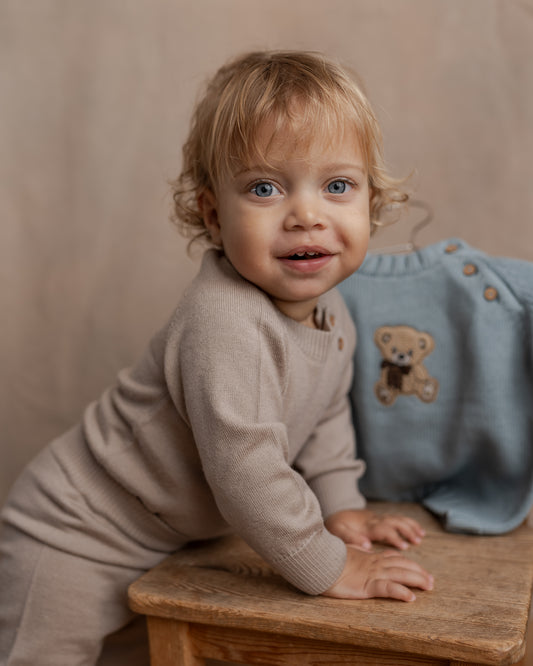 Fra lune uldtrøjer til lette cardigans og uldbodyer til de yngste drenge – alt er designet med fokus på komfort og holdbarhed. Uldens naturlige elasticitet betyder, at den giver sig med barnets bevægelser, uden at miste form eller varme.
